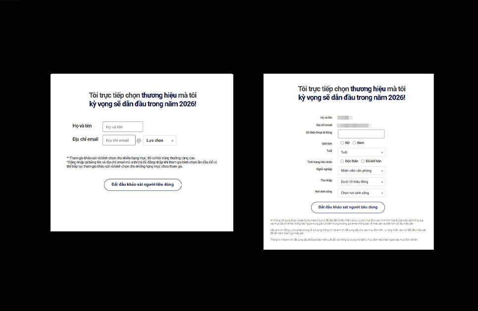 *Ngoại trừ họ tên và địa chỉ email, những thông tin cá nhân còn lại của anh/chị chỉ cần nhập một lần duy nhất để tiến hành tham gia khảo sát.