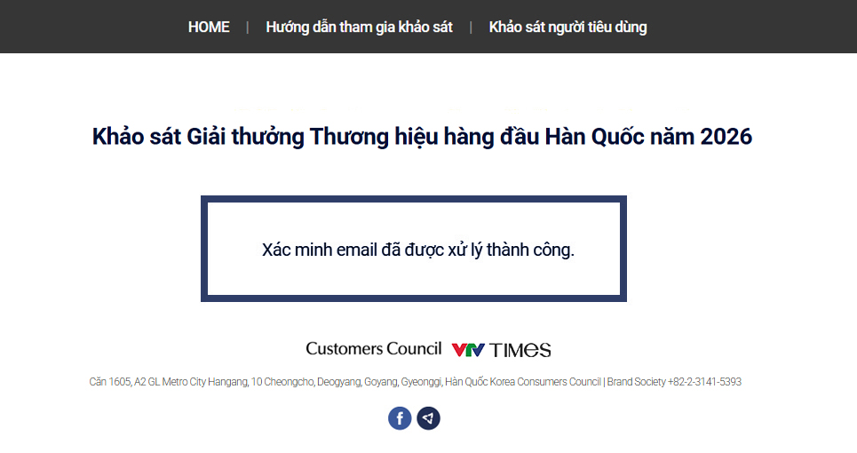 ③ Sau khi nhấn vào nút và màn hình bên dưới xuất hiện, nghĩa là việc xác minh email chính chủ của anh/chị đã được xử lý thành công.
